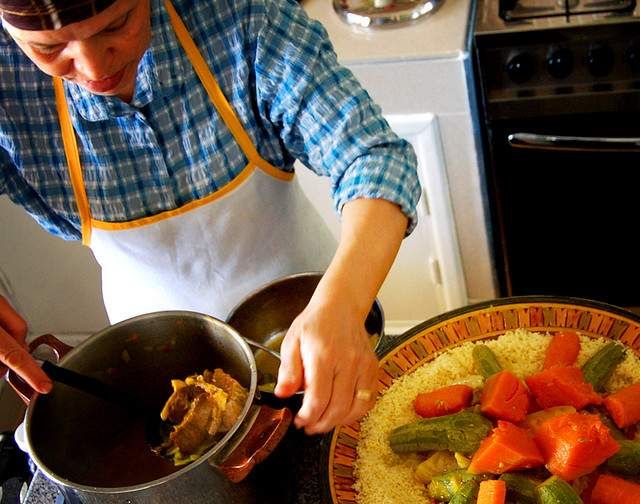 Traditionally, groups of women would come together and make large batches of couscous over several days. Nowadays, however, the production is largely mechanized. To taste a homemade version, head to a traditional North African restaurant and ask the chef whether he prepares the couscous himself. Usually it will be served with a meat or vegetable stew spooned over it.