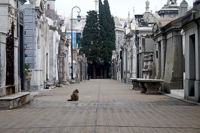 La Recoleta,located in a classy Buenos Aires neighborhood, is another elegant masterpiece of architecture for the afterlife. The wide pathways (which are often patrolled by resident cats) are lined with mausoleums noteworthy for their variety of styles: cathedral, art nouveau, and modernistic boxes that one guide described as “ATM-style.” This cemetery is also known for its eclectic symbols including a menorah with a cross, lots of Masonic pyramids, and even some statues of pagan gods. Although Eva Peron is the most famous resident, the most tragic story belongs to Rufina Cambaceres who was buried alive here.