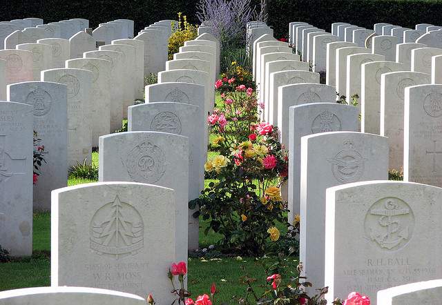 Bayeux is home to the largest British WWII cemetery in France. Located near the Normandy beaches, most of those who are remembered here died during the D-Day Invasion. This cemetery feels decidedly British with colorful English flowers growing in small garden patches by each of the graves. The headstones are engraved with personal messages chosen by relatives — simple, heartfelt epitaphs like this one: “We often speak your name, but all we have to treasure is your picture in a frame.”