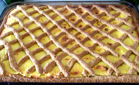 In Poland, if you haven’t come across a good babka, that marbley bready coffee cake of Seinfeld fame or the jam-filled cookies called kolaches (thumbprint cookies on your Christmas cookie-exchange), then you might opt to stop for a slice of sernik, a tasty Polish version of cheesecake, made with twarag cheese, and occasionally potatoes. It’s covered with a latticed top, and makes a great afternoon snack.