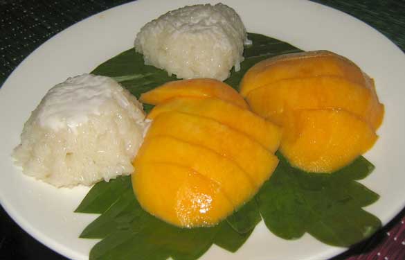 As a meal-ender for the complex flavors of Thai food, this can’t be beat. The rice is simmered in coconut milk until it is soft and glutinous, and served beside or beneath fresh mango. And since it has fruit, you can include it in your five-a-day for fruits and veggies.