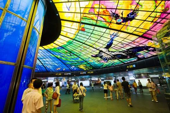Formosa Boulevard is one of the busiest stations in Kaohsiung city, and also one of the most beautiful. In addition to being the place where the Red and Orange subway lines meet, the stop is also the location of the “Dome of Light.” The “Dome of Light,” situated on the upper part of the station, is known as the biggest public art installation all over the globe. We thank the artist Narcissus Quagliata for putting together the dome in a little less than four years, which included shipping pieces of colored glass directly from Germany.