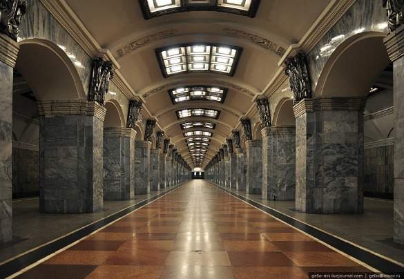 The Moscow International Portal describes the stations of the Moscow subway as “underground palaces of Moscow.” With their magnificent vestibules and underground halls, often decorated with chandeliers, they certainly merit this description. Many of the stations are linked with the city’s history; while old, pre-war stations represent Russia’s industrialization, post-war stops embody the pleasure of victory and pride that was felt by the inhabitants at the time.