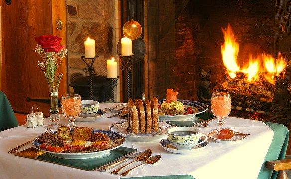 Fall in to king-sized featherbeds with fine linens as fireplaces flicker. Fresh flowers, Italian tile and travertine bathrooms, and heated whirlpools for two combine to offer a total retreat for romance this Valentine’s Day. Linger over breakfast before the open hearth, or choose to enjoy your fist meal of the day in the privacy of your room.