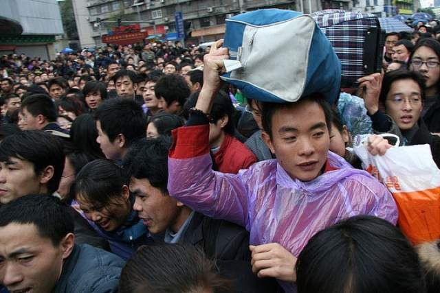 The whole station is absurdly crowded, full of umbrellas and wet people and families huddled together and men smoking and stray dogs. The aisles are all muddy and clogged with luggage and the seats are all full and the signs are all in Mandarin.