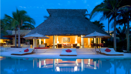 In the main house you’ll also find a large dining area that comfortably seats 14 guests. But why eat inside? You’re in Mexico and the outside dining is spectacular. You have 2 outside choices – dine next to the large pool or on the rooftop terrace closer to the stars. You’ll enjoy fabulous meals at this all-inclusive retreat. Near the pool, you’ll discover a family room with movies, board games and foosball; a gym with an elliptical trainer, treadmill and weights; a massage room; and a business center for your work related activities. The guests at this villa have access to golf at the Jack Nicklaus Signature Golf Course, tennis, kayaks, windsurfing equipment, snorkeling and many other activities. The resort is $13,000 – $20,000 per night and comes with an extensive staff of a concierge, property manager, 3 waiters, chef, 5 housekeepers and landscape and maintenance people. And, since drinks are also included in the all-inclusive price…Margarita, anyone?