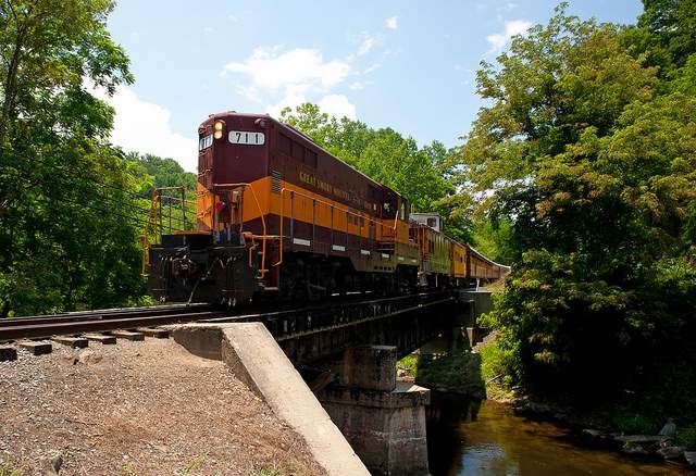 This heritage railway in North Carolina travels the scenic foothills region with 25+ bridges, two tunnels, and views of the Great Smoky Mountains National Park. The route departs from the historic Bryson City depot and traverses fertile valleys with excellent wildlife and wildflower viewing.