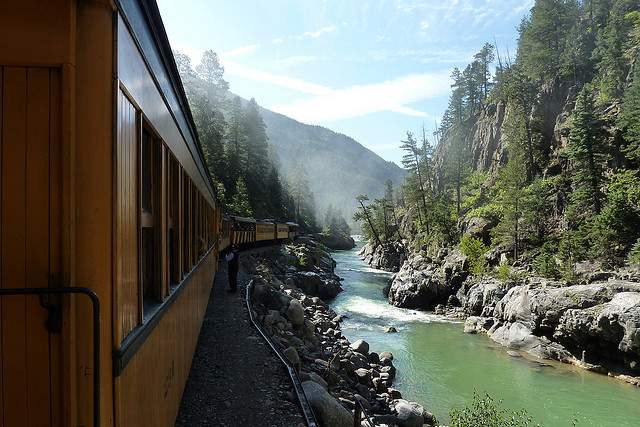 The outdoor gondola cars (open-sided with bench seating) offer the best value and the most authentic experience. These cars face outward for unobstructed views and cost less than enclosed alternatives. The 45-mile Durango to Silverton route takes about nine hours round-trip, traveling through the Colorado high country.