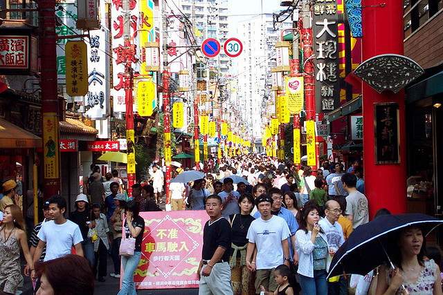 Yokohama hosts the largest Chinatown in all of Asia; the neighborhood blossomed when the Port of Yokohama opened to foreign trade in 1859 as many of the traders were Chinese and settled here. The lanes and streets of Chinatown are marked by the nine gaudy but colorful gates found throughout.