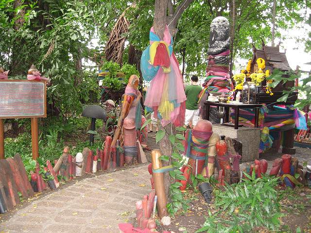 The phallic form, known as a lingam in Hindu and Tantric Buddhism, represents Shiva and symbolizes the generative power of the universe - spiritual rather than merely sexual. At Chao Mae Tuptim, this sacred symbol merges with folk fertility practice and genuine spiritual devotion. Visitors should approach with respect: these offerings are made by people actively seeking to create life and family. Modest dress (covered shoulders and knees) is appreciated.