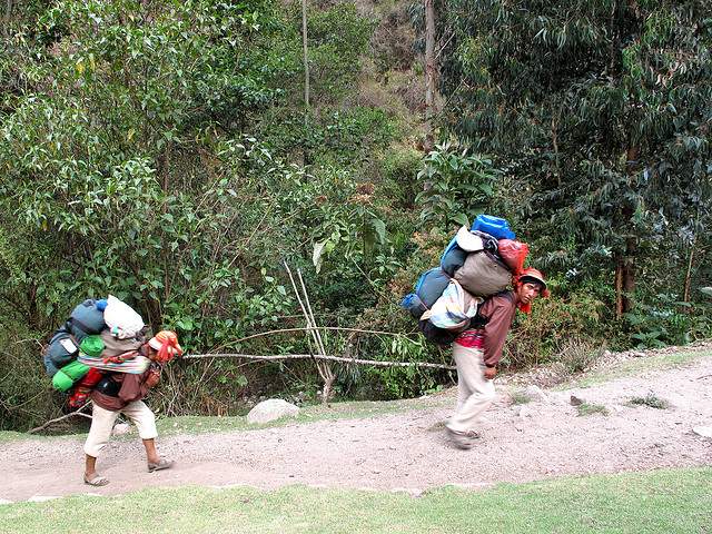 Many high-altitude climbs employ the use of porters, hired to carry luggage and camping equipment up steep mountain paths, a difficult task that none-the-less provides welcome employment opportunities to local villagers. Unfortunately, porters are all too often treated as mules, overloaded with packs weighing almost as much as their body weight, wearing flimsy sandals ill-suited for climbing and grossly underpaid.