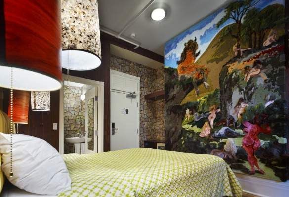 Each of the 43 rooms at this boutique hotel is painted by a different emerging artist from around the world. The hotel is located in the heart of downtown San Francisco’s French Quarter, at the crossroads of Union Square, the Financial District and right next to the great gates of Chinatown. In this unique location, Hotel des Arts offers the opportunity to experience art in a new and more immediate way than a gallery or studio.