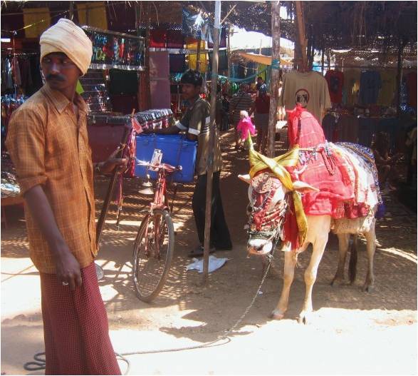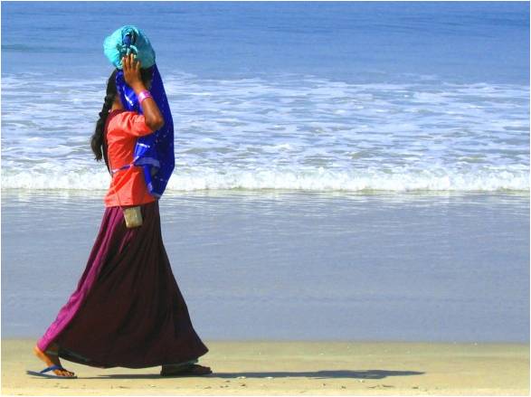 Sangita is tweaking my toes! She roams the beach selling cheap Guajarati cloth and Rajasthani jewellery. Just nineteen years old, she is already the mother of two children whom she is trying to educate at the local school. She spends the winter months in her home village in Karnataka, earning some fifty pence a day picking peanuts. She comes to Goa during the tourist months, tempted by the chance of making money. It’s not an easy job. The police constantly hassle her and demand a daily tax or else they confiscate her wares. Whilst holiday-makers snooze under the shade of their beach parasols, Sangita trudges the sand under the heat of the day looking for custom. She could grace any European cat-walk but her beauty is transient, the rough sun tears at her face and soon she will be haggard. I’ve told her a million times that I never buy anything but she gently persists. Eventually I buy another lungi. I’ll never ever wear it and I’ve paid well over the odds but we can all afford to be foolish sometimes.