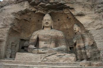 Northern Wei dynasty have been sculptured in a fusion of Indian, Central Asian and Chinese styles. Caves 1 to 5 are the most appealing. There are stunning gigantic statues of the Buddha and episodes from his life carved on the walls. The paint and colours on the sculptures look surprisingly fresh even after all these centuries and bring the sculptures to life. The largest statue of Buddha is in cave 20, which stands now exposed. This statue will be familiar to many as it appears in many postcards, ads and promotional material about China and in particular about Shanxi. Our guide aptly described the statue as the ‘Foreign Minister of China’.