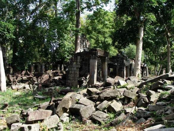 The sound will be of the birds singing, of a passing tractor. Those God-Eyes staring serenely out over a largely tumbled down temple help one survey the history that stands before you, penetrated by trees and touched by time. You often will have the entire grounds to yourself. Outside a few shaky structures (that is what the single viewing platform is for), nothing is roped off. Your access if unfettered. Surely this would destroy the ruins if the hordes of Angkor stamped through here. As it is, it is an abandoned ancient ruin far in the Cambodian countryside.