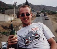The car was f***ed and as everyone else clambered off the bus and ran over to check for loose body-parts we hailed our next ride. This bus was completely full and this meant we all achieved a lifelong dream. We rode the roof. The smiles on our faces as we clambered up the ladder remained with us for the next hour and a half. We were pigs with unlimited pools of shit to roll around in, we were kings, we were Gods, ….we had two bottles of very good Chilean red wine. The first bottle lasted less time than it took to open the second and by the time we got stuck into this we were a hopeless mess of laughter and stupidity.