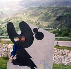 Peregrino: The peregrino (pilgrim), symbol of the Camino de Santiago, backed by the Galician countryside as seen from O’Cebreiro.