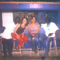 Andrea Peter, my colleague who also worked for Olympic Aid, and two local Ivoirians we met in a town called Grand Bassam, having some authentic Ivorian coffee at a local coffee bar.