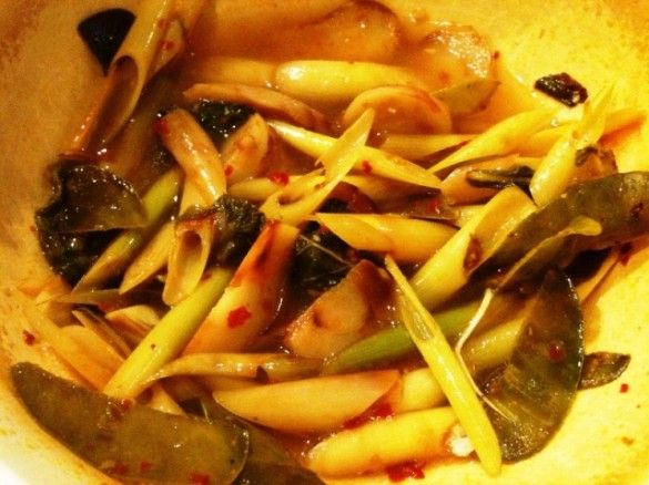 I really can’t put my finger on it. Is it the sour that comes from fresh squeezed limes, kaffir lime leaves and tangy tamarind? Or maybe the spicy that comes from chilis and chili paste. Or perhaps the fragrant thick slices of ginger-look-alike galangal or the stalks of lemongrass? Or the milk that’s added to smoothen out all the flavors. You can’t even EAT most of the stuff that goes into this soup. But whatever it is, it’s an unbeatable combination that’s at once earthy and refined.