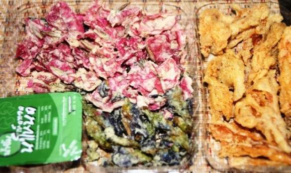 Thais love to snack. In my office, there’s food ready to share all day. Whether it’s boiled corn conveniently kernelled with a topping of freshly grated coconut or rice rolls with a spicy ginger dipping sauce, there’s a never-ending supply of snack food. The strangest I’ve come across would have to be tempura flowers. You can never eat just one?
