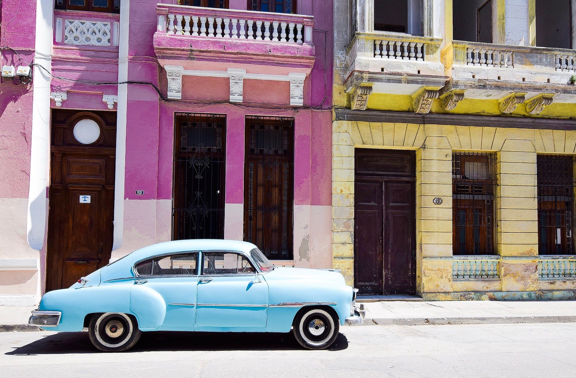 The crowded street was lined by crumbling concrete buildings, each one painted a different cheerful color. 1950’s classic cars were parked along the block, their colors just as bright and jaunty as the buildings they were parked in front. Yandi showed us our place, a cozy apartment with all of the windows boarded up complete with a leopard skin rugs, and tv with about a dozen reggaetón music videos stored on it.