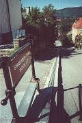 The first thing I did was look up. I thought that it must lead to the highest point in town. So, I found myself at the old fortress. It had a wonderful view of the city. However, there was no bicycle lift to be seen. I asked a young woman who worked at the coffee shop. She and I walked over to a photo map of the city. It showed all the hills and everything very clearly.