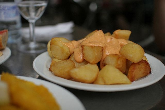 Found on every Spanish tapas menu in Barcelona, the patatas bravas is a scrumptious jumble of golden fried potato chunks dipped in a spicy, tomato-based sauce. Simple to prepare yet outrageously flavorful when prepared the right way, patatas bravas has a loyal following especially in its hometown, Barcelona.