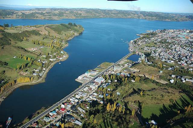 Chiloe is connected to the mainland by ramps that have been built in the channel to form a motorway. The easiest way to get there is to fly from Santiago to Puerto Montt and then take a bus. There are terminals in the main towns of Ancud (north island), Castro (east coast), and Quellon (end of the road on the southeastern coast), but you hop off in any of the villages en route.