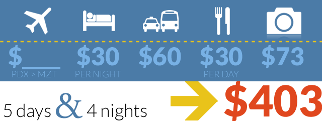 Again, this was a press trip, but here are estimates of what an independent traveler can expect to pay in Mazatlán.