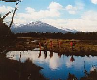 Here, the great Andean mountain chain makes its final appearance in the southern part of the island, as the Cordillera Darwin (to 2500 metres) and ice field. This is the remnant of a huge ice sheet that existed during the last Ice Age, some 100,000 years ago. The melting of the ice has revealed a magnificent, glacier-sculptured rocky landscape. Rising sea has flooded valleys, creating a maze of channels, islands and fiords where glaciers descend into the water, shedding icebergs.