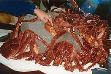 “The choppy sea gave us a bouncy, wet, Zodiac trip back to the ship anchored out in the channel. Once on board and stripped of our waterproofs, we all enjoy a bowl of steaming chowder and chat of our adventure ashore. Our attention is attracted to a fishing boat battling the waves and heading towards us. A rendezvous with the fishermen results in our crew hauling aboard several sacks of spider crab, or centollas, destined to be served up for dinner, fresh from the icy sea. Almost too fresh, for one a metre across the legs, is displayed alive on ice, to greet the diners on arrival!”