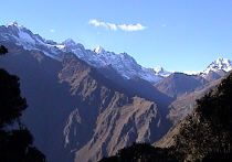We carried on after lunch. The ache turned to a hurt. The Peruvian flat was getting less and less flat as the day went on. The altitude was increasing. On the plus side, the scenery was outstanding – green hills were turning more rocky, and we glimpsed snow here and there. We reached camp around four thirty. Our tents were brightly arranged in a row, the porters again having gotten there well before us. A hot dinner and a shot of rum saw us to bed almost as soon as it got dark. We were tired. The cold ground and our four season sleeping bags seemed extremely inviting.