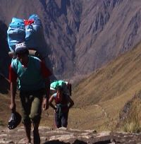 A coach arrived and we all got on. Half an hour later, so did our guide, Jose Luis. There was definitely more sleeping to be done, and we did, until the roads got narrower and icier. We stopped for our last visit to a toilet at a tiny village, where trekkers seem to support the local economy – we were jumped on by villagers selling walking sticks, ponchos and coca leaves, which you can chew to help with altitude sickness, if you possess no tastebuds. At the start of the trail, we met our porters – fourteen of them, including Jose the Chef.