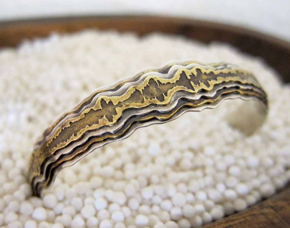 Unlike other stores in the area who go full-tilt fleur de lis, Maria and Patrick pay homage to their home city in stylized ways that are personal to them; the ‘Let’s Eat’ shield with crawfish, the shotgun house bracelets, and the aforementioned nature series made from pressed leaves. Maria shared with me her goal as a professional jewelry artist was to create thoughtful adornment that could be both beautiful as well as powerful. This is likely why many n’awlins locals turn to these artists for authentic custom work, and their new waveform series called “Heart Beat of the City” is a great example of their subtle approach. By etching the sound waves of a song like ‘Do you Know What it Means to Miss New Orleans’ into a hand cut and layered bracelet, they offer visitor and resident alike a beautiful way to support both the art of New Orleans and the current local artists.