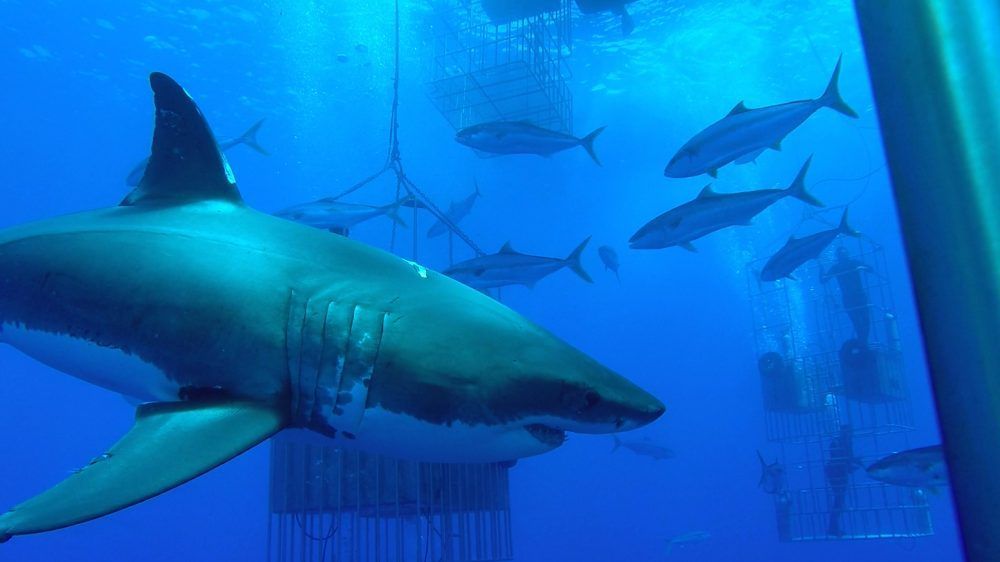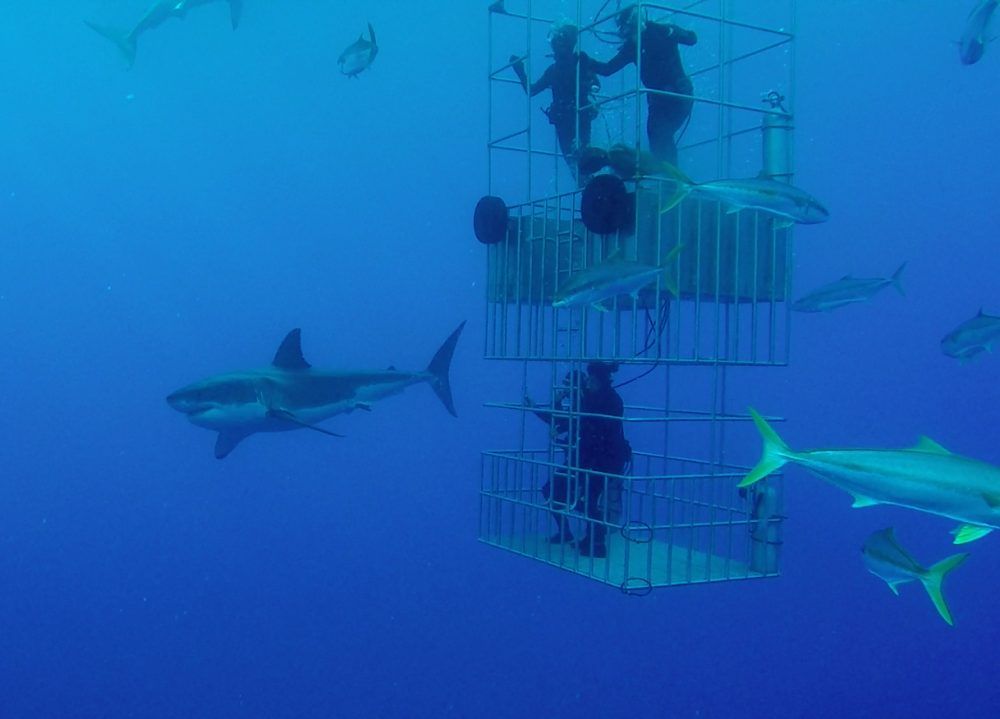 “Hey,” I said to no one in particular as I exited the cage, “there’s a new shark down there. Female, with a white stripe on her head. She’s the most aggressive shark I’ve seen out of all of them!”