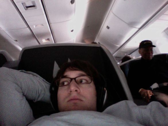 I listen to a lot of “sleepy time music” to help me sleep on planes.