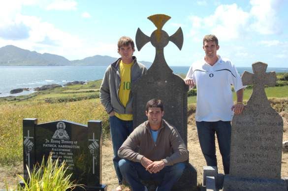 Joey with his two brothers at their great-great grandfather's tombstone in Ireland