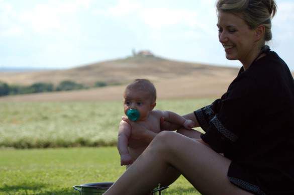 Joey's wife Emily and their son Jack in Tuscany