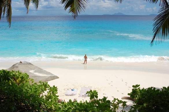 Enjoying an empty beach on Frégate Island in the Seychelles