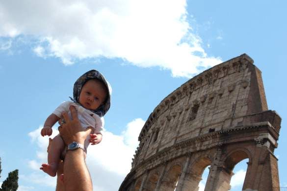 Joey holding Jack for the bird's-eye-view of Rome