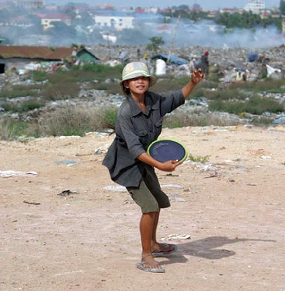 playing Frisbee with a girl at the Phnom Penh city dump. [Click that link, you won’t regret it. -ED]