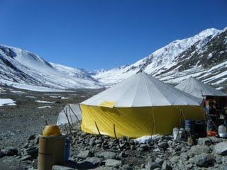 We crept into what looked like a circus tent to discover a stove and sleeping areas.