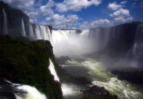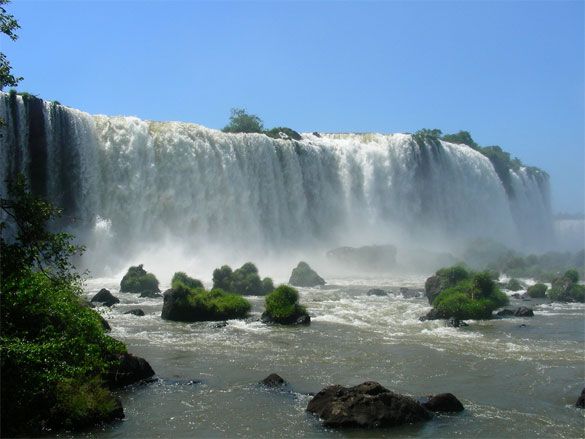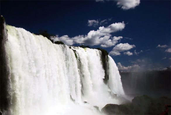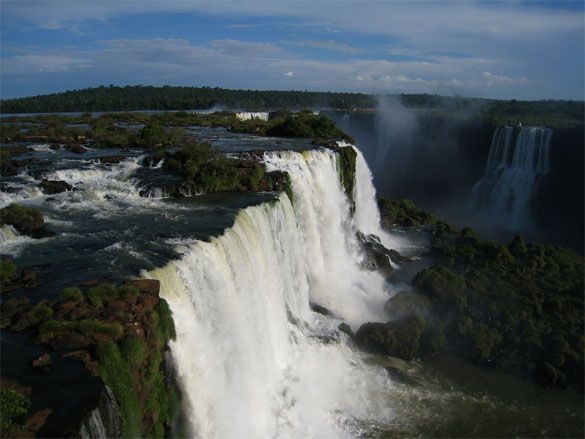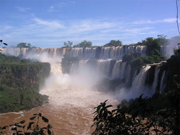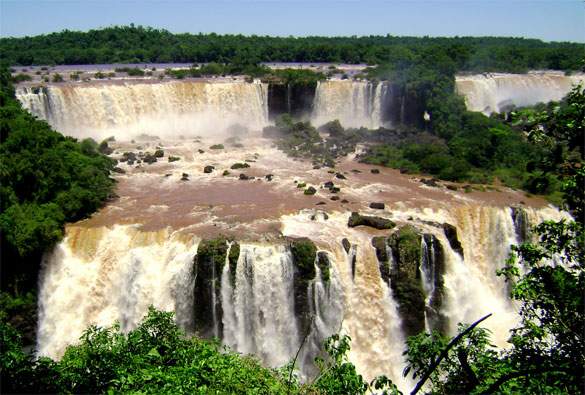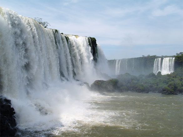 The Iguazu Falls is one of the largest collections of waterfalls in the world. There are about 275 waterfalls spread across 2.7 kilometres of the Iguazu River. The Iguazu Falls are located on the border of Brazil and Argentina, and can be viewed from both sides.