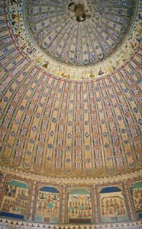 Impatient with the winged guests, the tardy peahens, I followed Maharaj to Thakur Sardul Singh’s Chhatri (cenotaphs). Chhatris, literally meaning “umbrellas” after their dome-shaped ceilings, were built to commemorate kings and wealthy merchants. The domes were adorned with artistic depictions of the deceased, his family and, of course, his favorite gods. The well-preserved chhatri of Sardul Singh was exceptionally detailed.