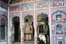 A painted baithak (salon) in a Shekhawati haveli