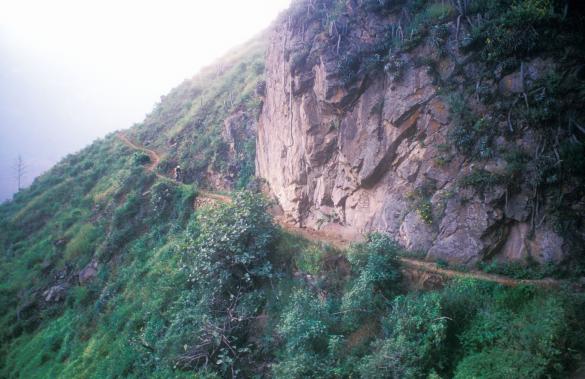 The trail drops sharply into a narrow canyon. The exposure is scary but electrifying. We stop at an Inca mine where salt is still mined today the same way it was thousands of years ago. From there the trail descends once again to the Urubamba River.