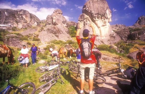 The trail isn’t really a ‘trail’ in the mountain biking sense of the word – the sport is still fairly new and undeveloped here. It’s more like an intricate Brobdingnanian web of meandering and intersecting foot- and animal paths. The 1,500 m descent is as long and challenging as anything I’ve ridden. Loose rock and exposure force me to concentrate solely on the few metres of trail in front of me. It’s exhilarating – I have to remind myself to stop and take in the awe-inspiring scenery. Halfway down, I briefly lose concentration and fly over the handlebars into the arms of a cactus. It takes Wayo 20 painful minutes to get all of the needles out of my ear.