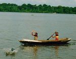 “This is fun”, said Mariana, confidently clutching me around the neck and kicking wildly, happy at being able to play in the river. Responsible for the girl and cautious of the current, I dared not venture too far from the boat’s protection. I was totally relaxed and treasuring this heavenly feeling until a sample of human excrement casually floated past, assuring me that I had cooled enough.