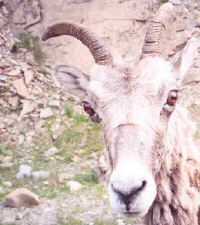 The day we drove to Jasper was lightly overcast; the highway, the mountains and the sky were all similar shades of blue. It seemed as though we were driving underwater and the pines and fir trees were some strange kind of seaweed waving up to the surface. By the time we reached the Athabaska glacier, the clouds had lifted a bit and we were able to appreciate the retreat of the famous wall of ice. Unlike the glaciers that shine like blue glass in the higher mountains, this glacier looks like a crumbling snowbank at the beginning of spring with bits of black and grey peppering the surface. From the observation deck of the interpretive centre you can see people making the walk to the glacier’s base. At that distance, they are a black thread that dissolves into a powder of moving black dots as they reach the base. The visitors centre has a large exhibit documenting the history of the glacier and its ecology.