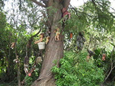 As I was typing this, I decided to google what we saw. Who knows, right? Well, lo and behold, I found an explanation! Apparently, it's calledLa Isla de las Muñecas (Island of the Dolls). The story goes that the island was haunted by a spirit soon after a little girl had drowned nearby. Don Julian, the previous caretaker, hung a doll on a tree to appease her ghost. News spread, more dolls were sent by people from around the world. Don Julian's family is carrying on the tradition at present. Where's Chucky?